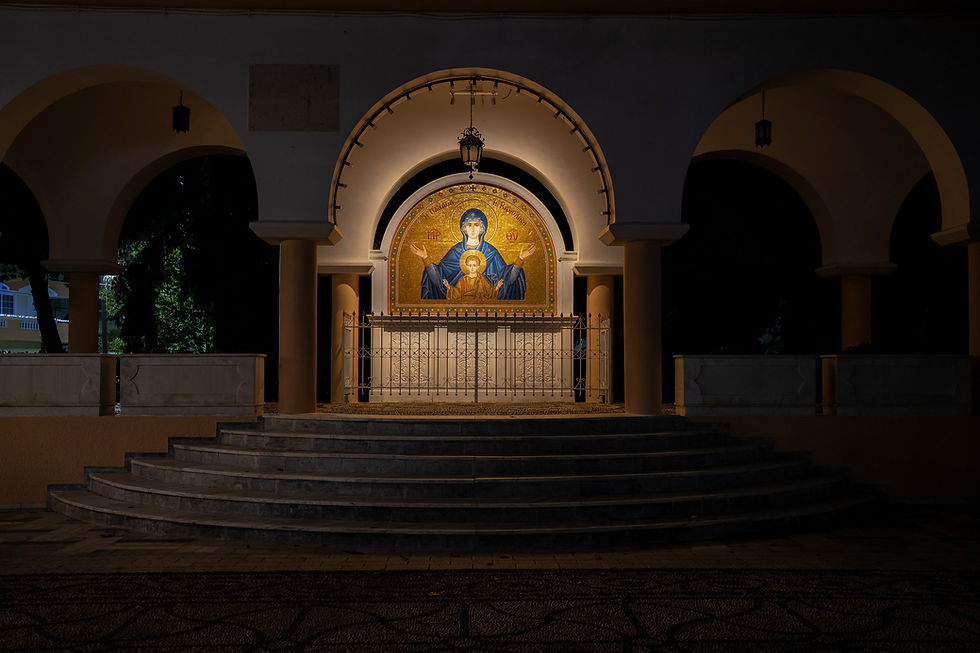 Ιdea-supervision for the construction of the mosaic: Archim. Meliton Bellos head of the church of Panagia Katholiki Kremasti Rhodes.